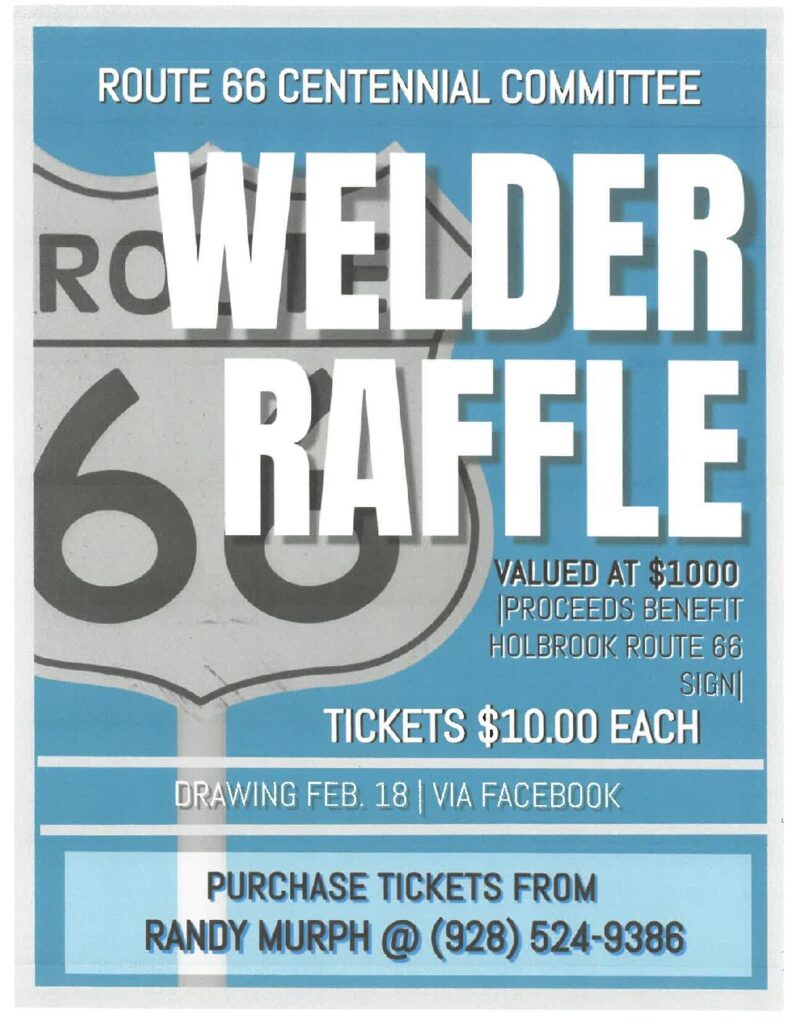 The Route 66 Centennial Committee is hosting a Welder Raffle featuring large oxygen and acetylene tanks plus a cutting torch set.